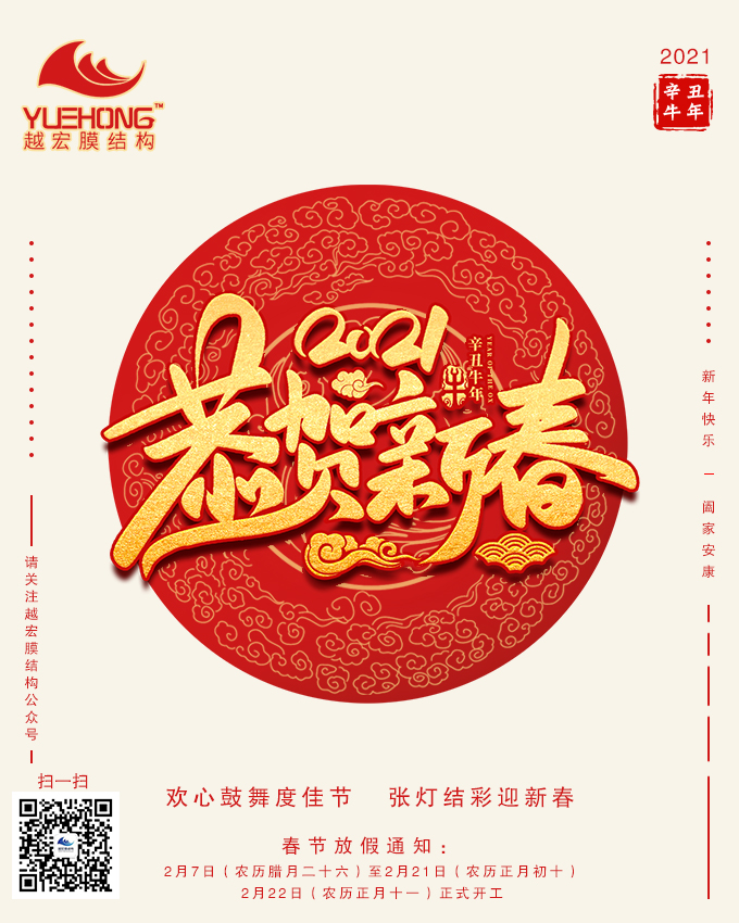 億錦企業(旗下越宏膜結構子公司)預祝大家牛年大吉!