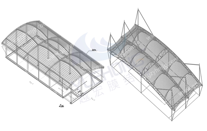 越宏膜結構廠家的廣州膜結構看臺是由鋼結構和膜材組成,分別有張拉式膜結構、索膜結構、骨架式膜結構、空間結構式等供選擇,根據(jù)不同場景進行設計出個性化膜結構。