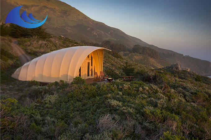 帳篷酒店采用高強(qiáng)度中空鋁合金結(jié)構(gòu)或者是鋼結(jié)構(gòu),表面具備有防腐處理,優(yōu)選膜結(jié)構(gòu)頂棚,安全耐用,防水、阻燃、防紫外線。